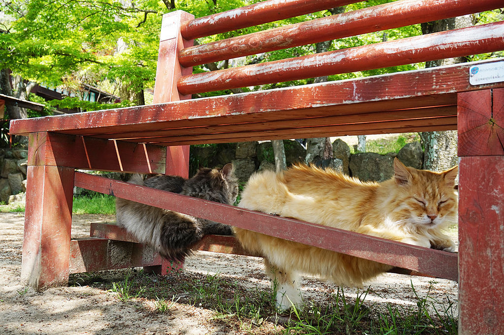 途中有一個觀景平台,上面有兩三隻在睡午覺的小貓咪。