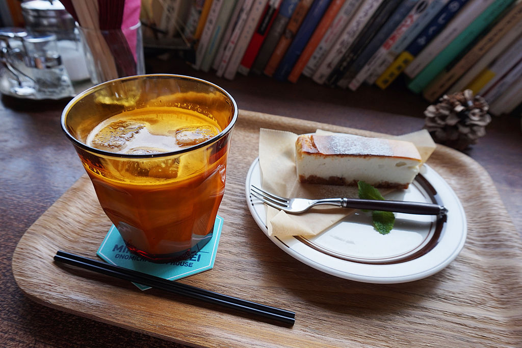我點了冰拿鐵和厚起司蛋糕。