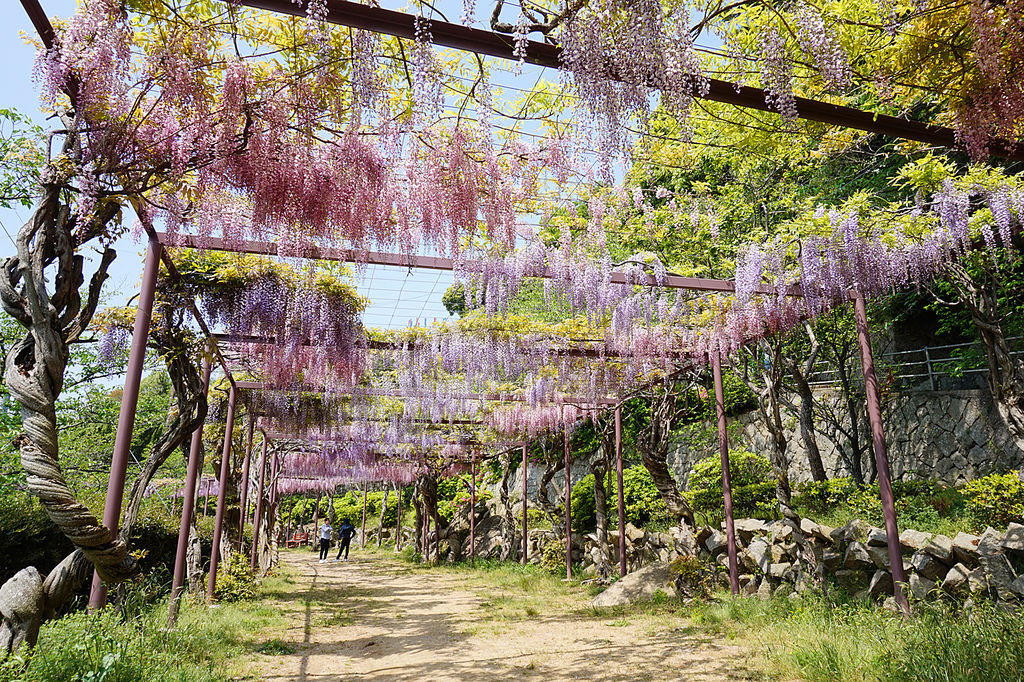 在剛才眺望三重塔景色的附近剛好有一個紫藤小徑。